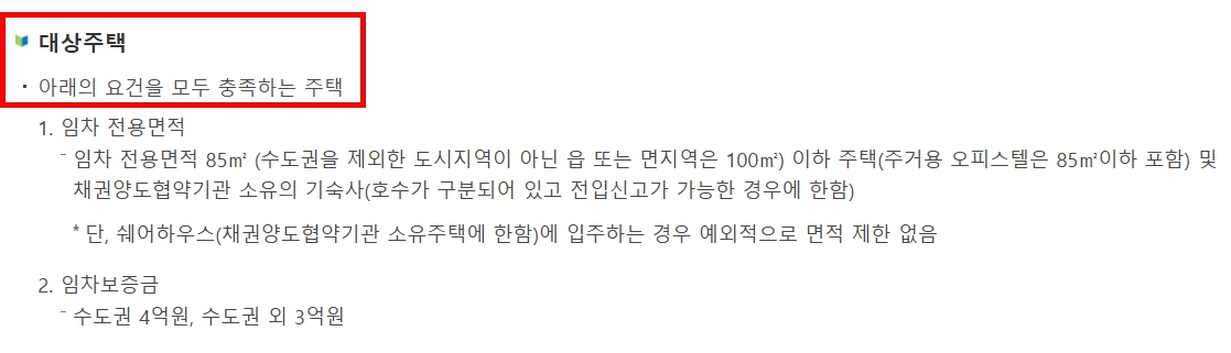 - 보증금 기준 충족