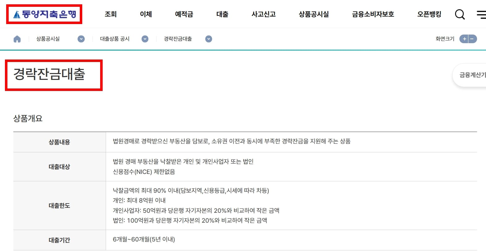 ✅ 경락잔금대출은 주로 저축은행에서 취급하고 있습니다.