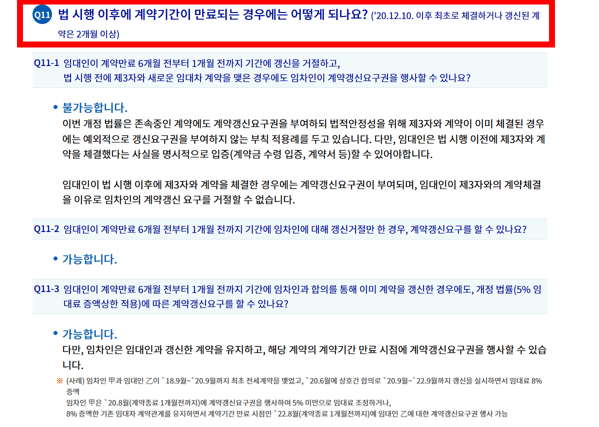 1. 2020년 12월 10일 이전에 체결되거나 갱신된 계약