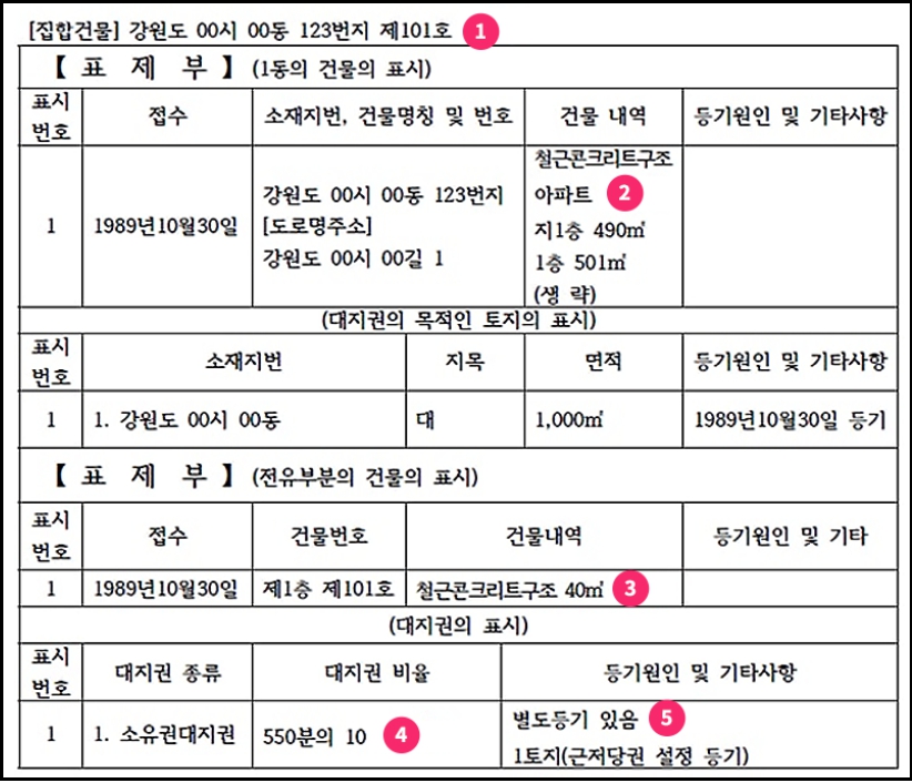1. 표제부 (부동산 기본 정보)