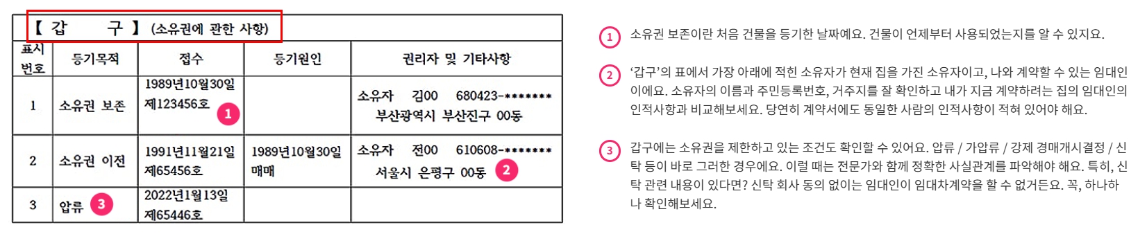 - 갑구 = 소유자 확인