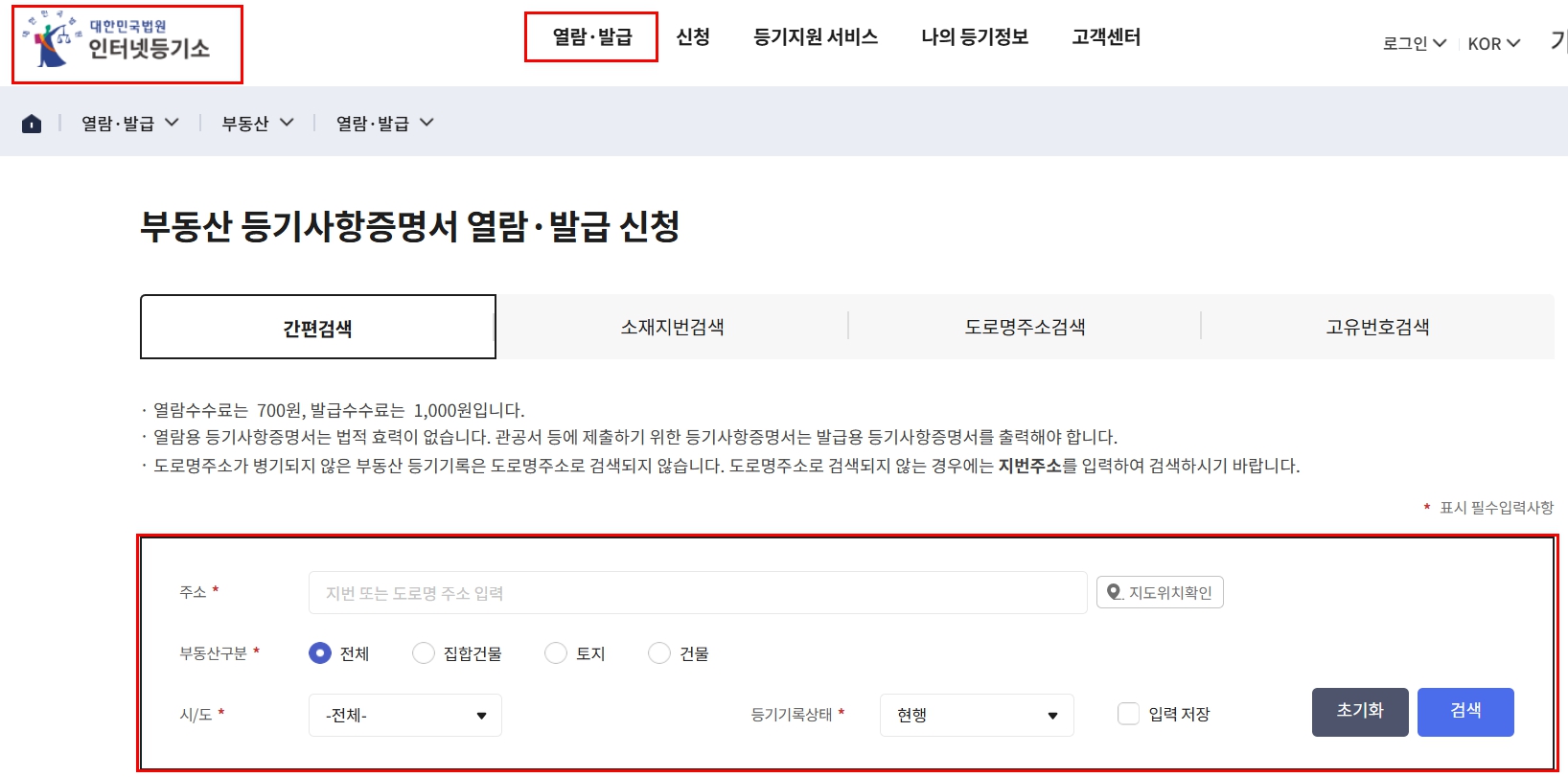 등기부등본 열람과 발급에는 소액 수수료가 발생합니다.