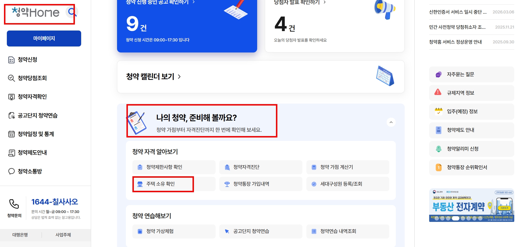 무주택 여부는 아래 방법으로 확인할 수 있습니다.