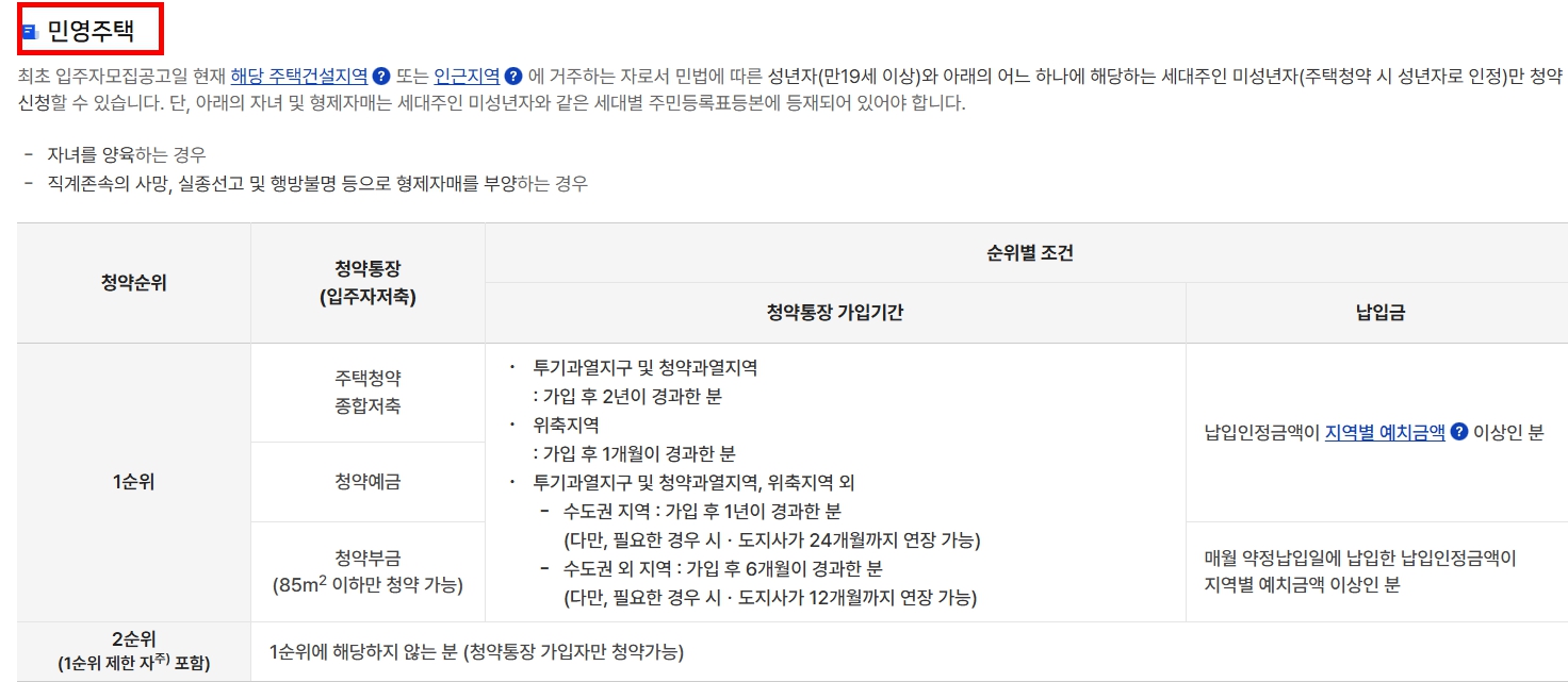민영주택은 공공분양보다 기준이 훨씬 엄격합니다.