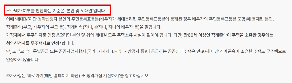 이처럼 무주택 자격요건은 개인 기준이 아니라 세대 기준으로 판단되기 때문에 가족 구성까지 반드시 확인해야 합니다.