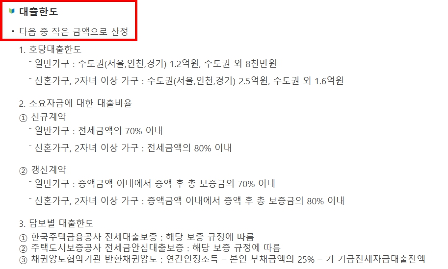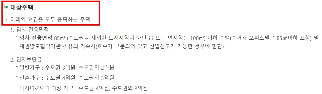 대출 대상이 되는 전세 보증금에도 상한 기준이 있습니다.