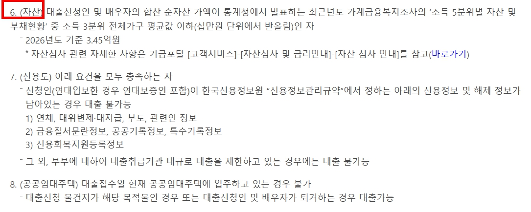 금융자산, 부동산, 자동차 등을 포함한 총자산을 기준으로 판단하며, 기준 초과 시 대출이 제한됩니다.