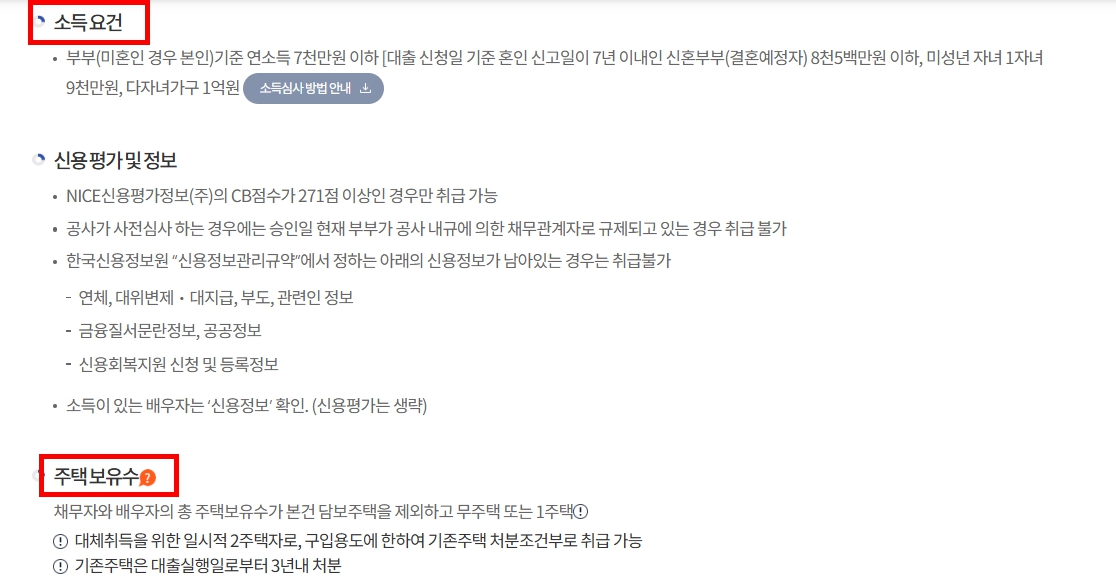 특히 소득과 주택 가격 기준은 가장 중요한 요소입니다.