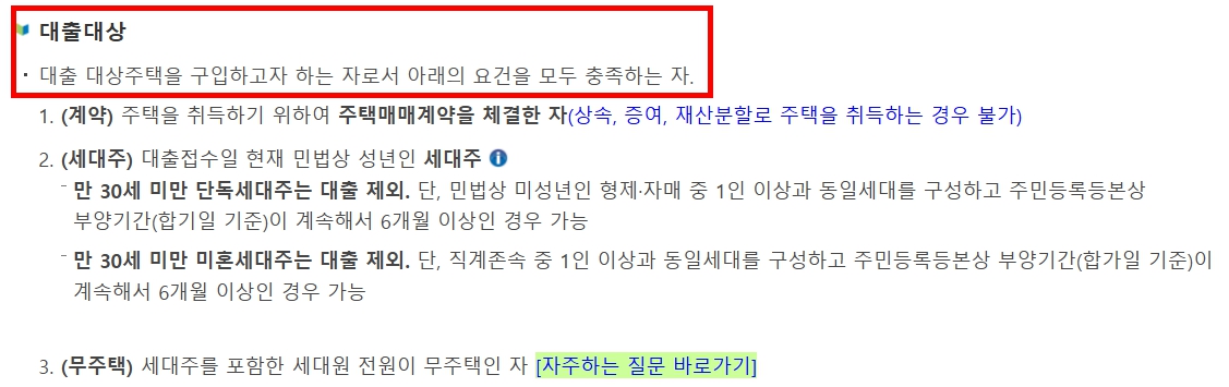 - 대상: 무주택자 원칙 (일시적 1 주택자 처분 조건 허용)