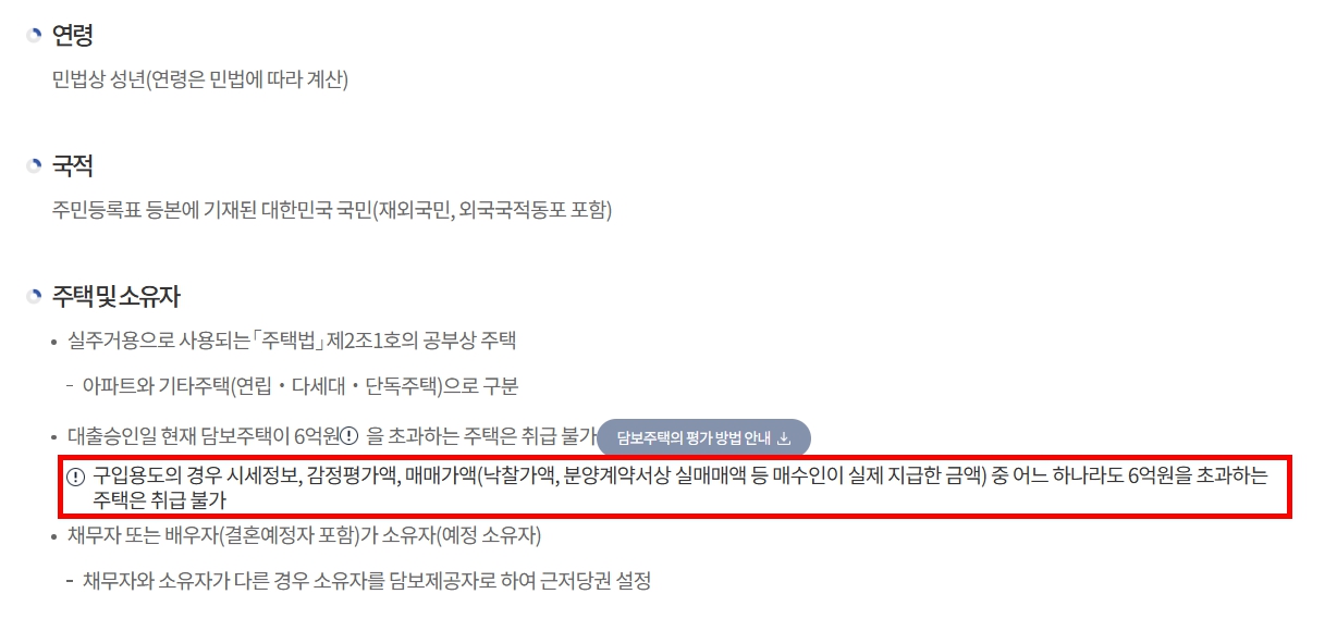- 주택 가격 기준: 약 6억 이하