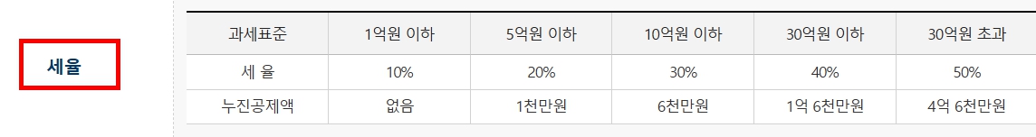 증여세는 단순히 하나의 세율을 곱하는 방식이 아니라