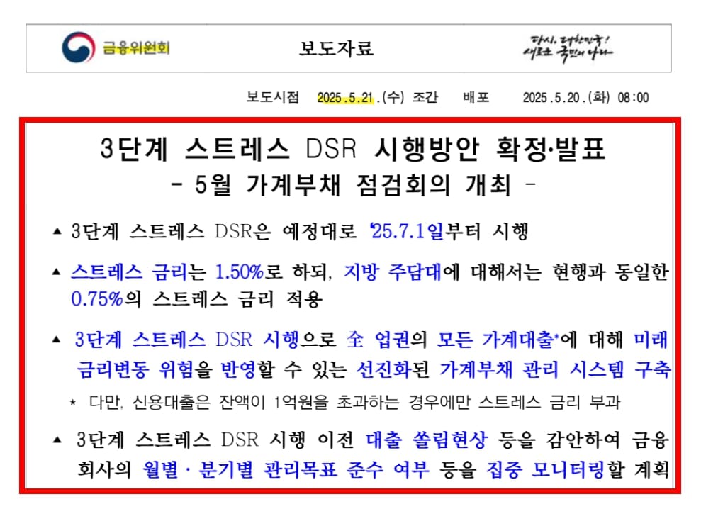 2025년 7월 1일부터 '스트레스 DSR 3단계' 제도가 본격 시행됩니다.
