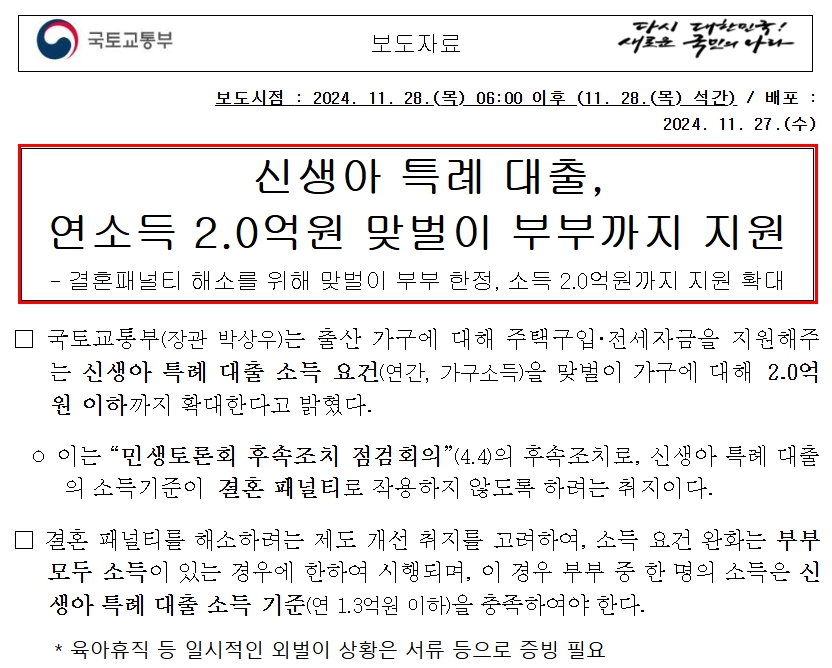 최근에는 정책이 확대되면서 보금자리론에도 신생아 특례가 적용되는 경우가 있습니다.