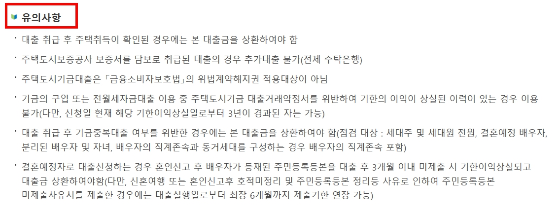 신혼부부 전세자금대출 주의사항