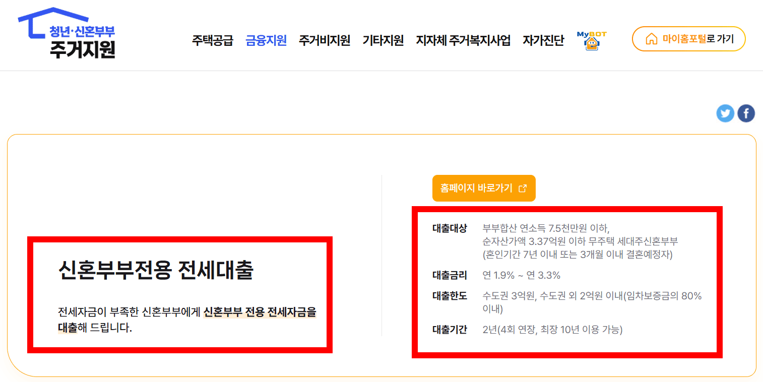 | 소득 기준 | 공공주택: 도시근로자 월평균 소득 140% 이하(맞벌이 200% 이하) 민영주택: 130% 이하(맞벌이 200% 이하) |