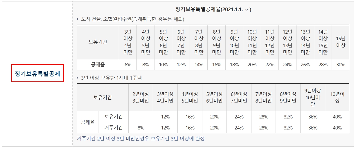 즉, 오래 보유하고 오래 거주할수록 세금이 크게 줄어듭니다.