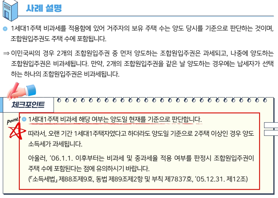 - 타이밍(매도 시점) + 조건(보유/거주)이 핵심