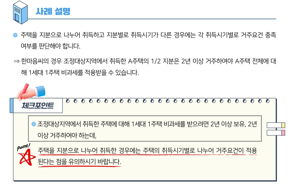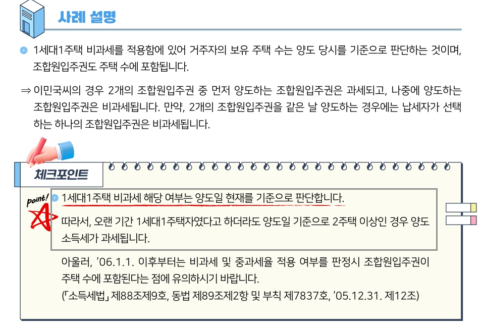 - 취득 구조가 달라도 비과세 적용 가능 여부가 달라질 수 있습니다.