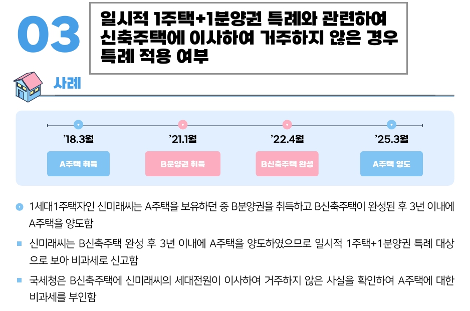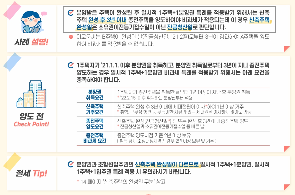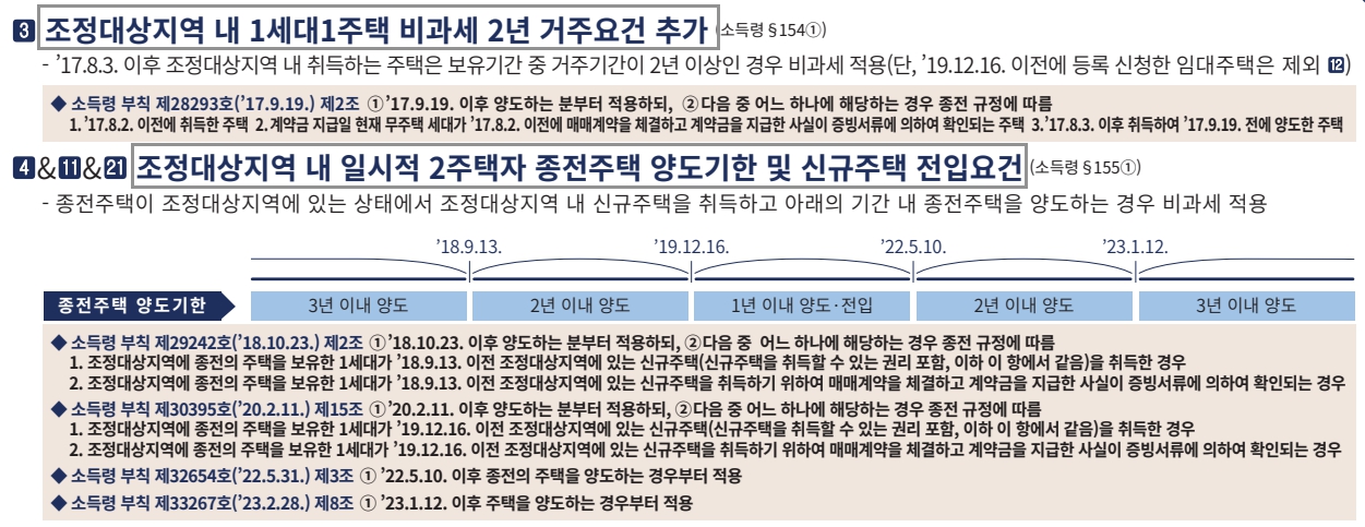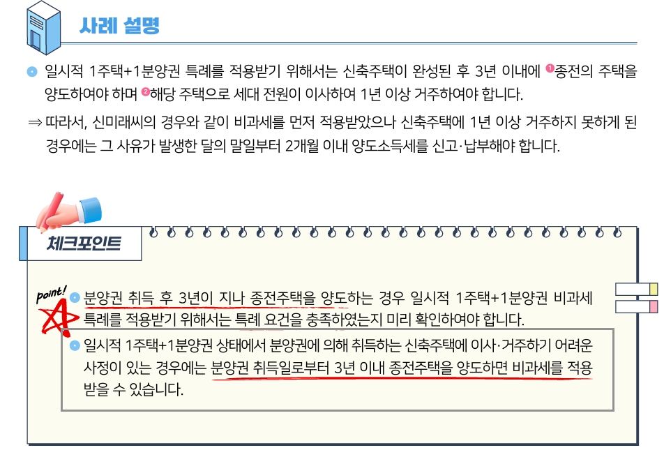 - 신규 주택 취득 후 2~3년 내 기존 주택 매도