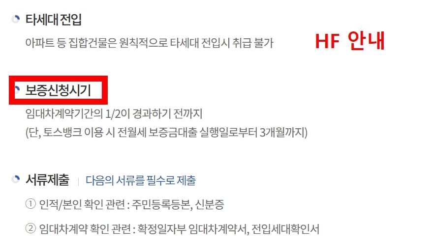 - HF 안내: HF 전세지킴보증