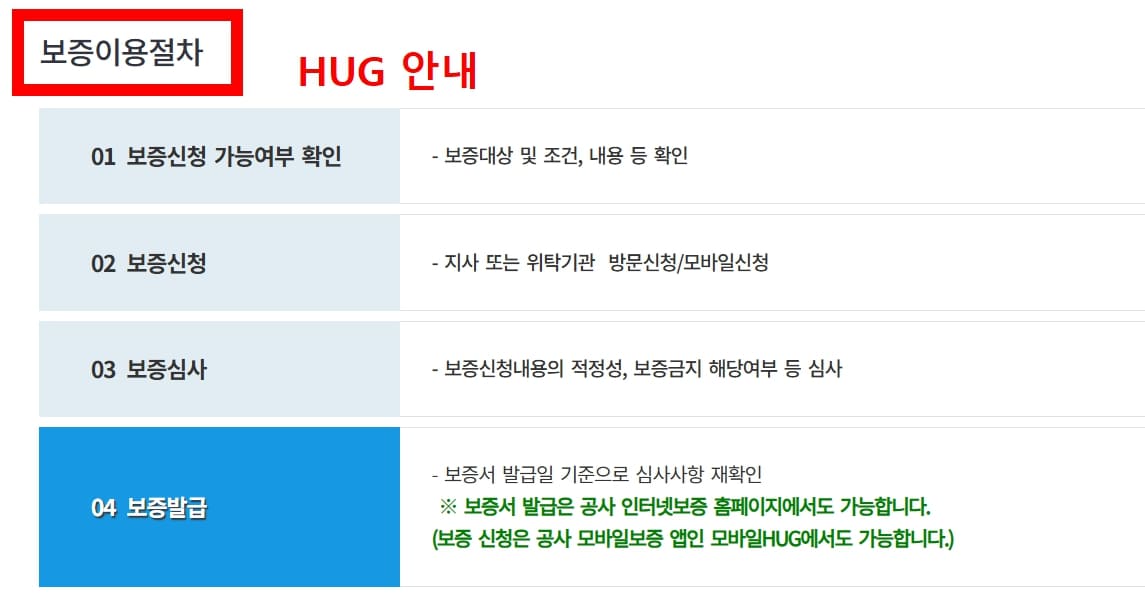 - HUG: 모바일HUG 앱, 네이버부동산, 카카오페이, KB국민카드 등에서 신청 가능