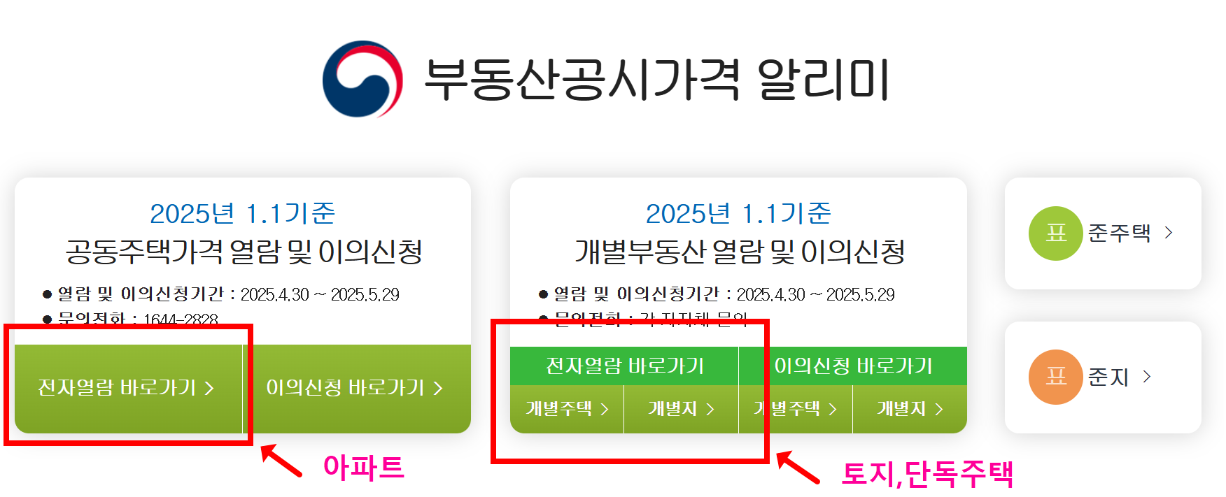 | 이의신청 | 공시지가에 이의 있을 때, 사이트 내 ‘이의신청’ 메뉴에서 온라인 제출(기간 내만 가능) |