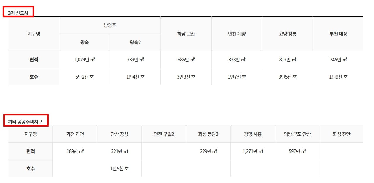 | 남양주 | 왕숙 | 약 3,070세대 | 2025년 하반기 | GTX-B 수혜지역 |